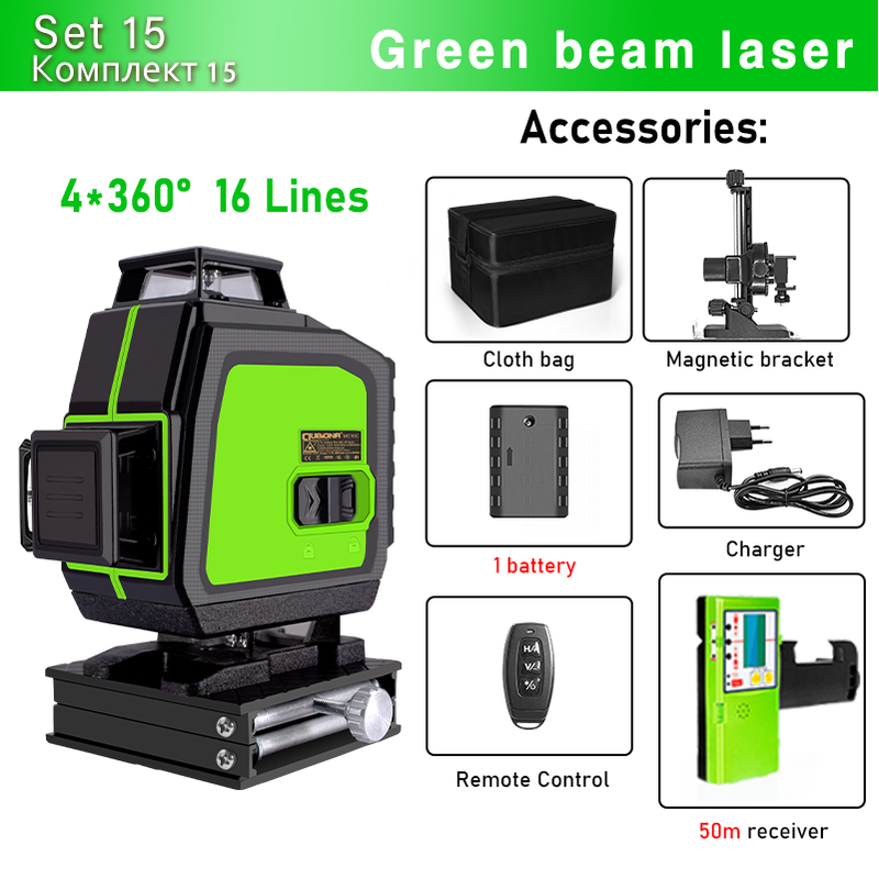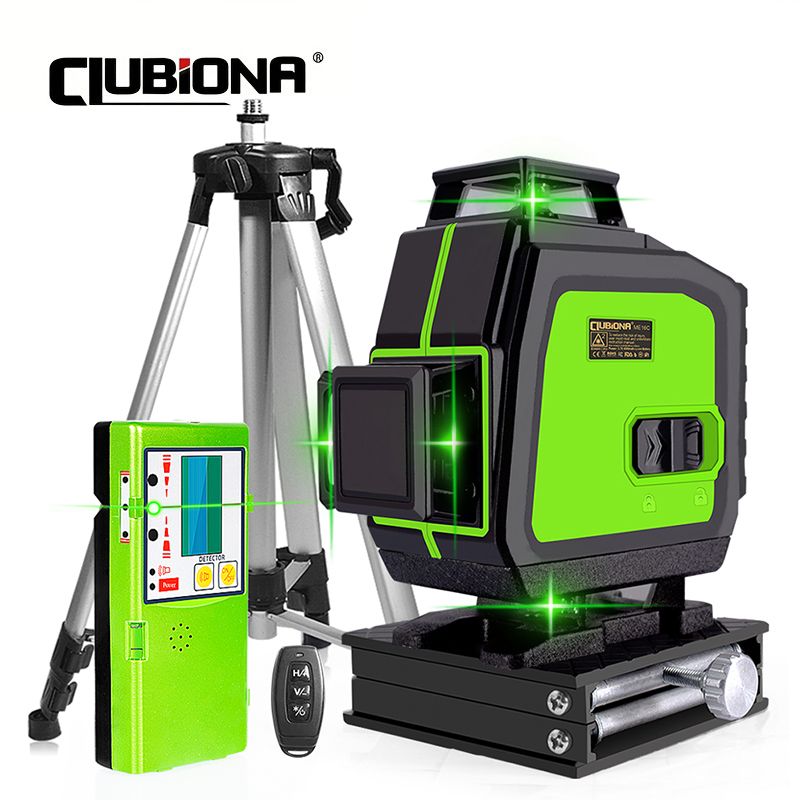 Clubiona 16/12 lines Laser Level professional Super powerful Green Lines With 3600mAh Li-ion Battery Remote Control pulse mode