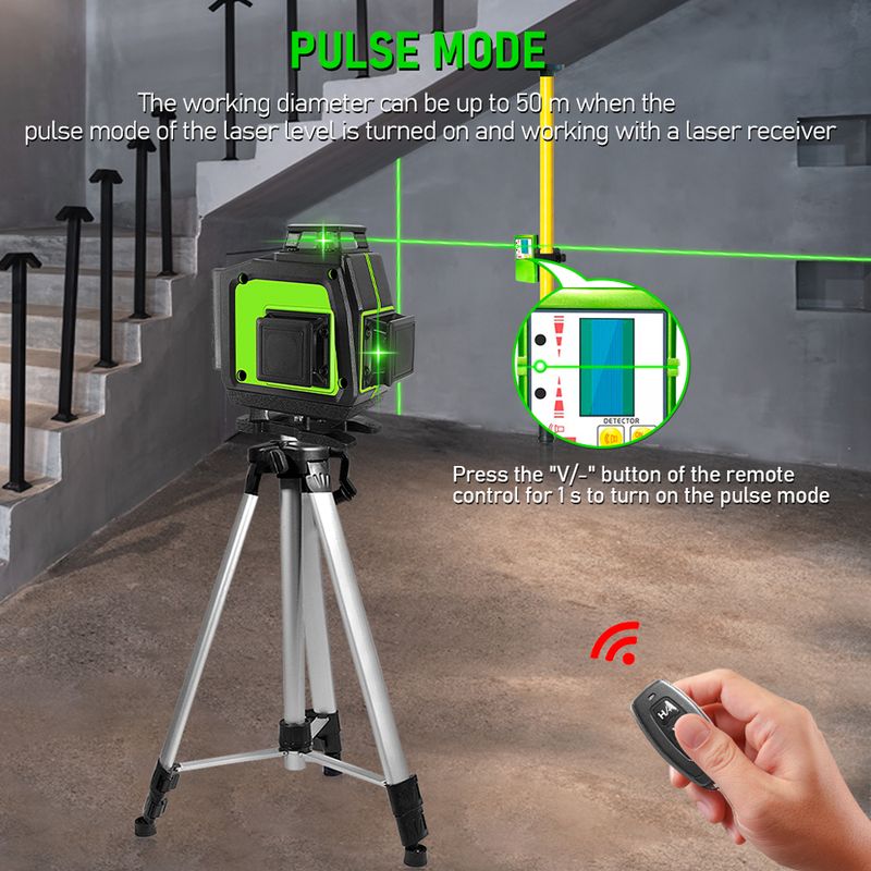1. Please turn on the pendulum of the laser level, press and hold the "V" button on the remote control until the laser line weakens, and then turn on the pulse/receiver mode.Line laser and receiver are compatible.