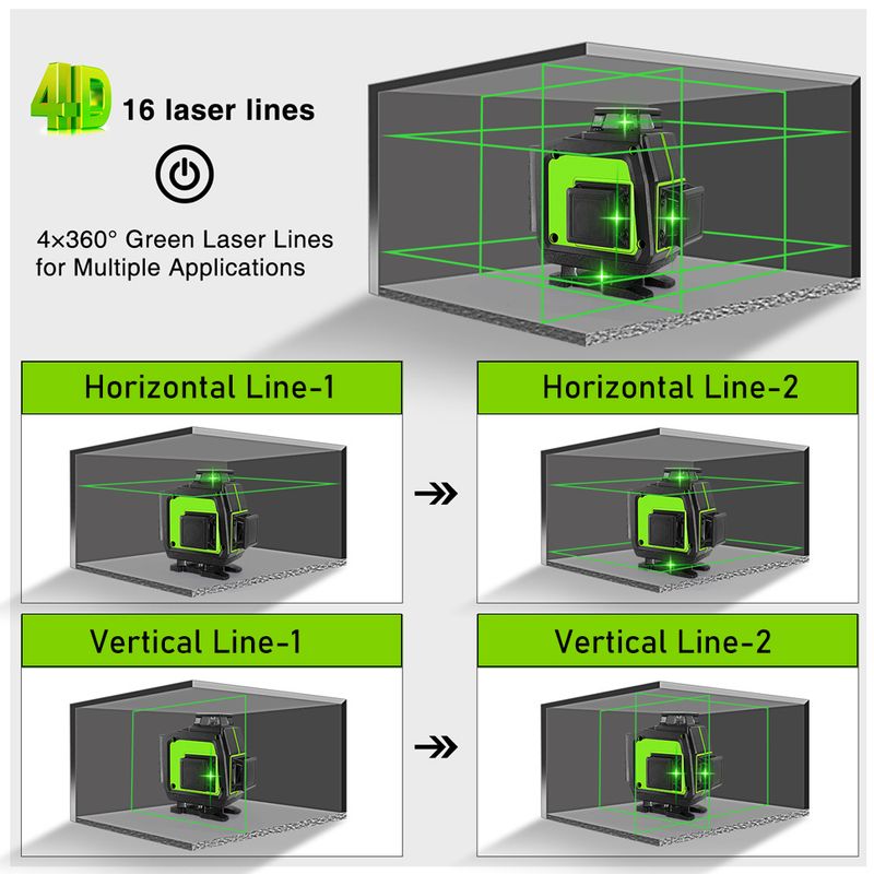 The ME16C green laser level with higher visibility, eye-friendly for all-new experience. Bright green-beam laser up to 2x brighter than standard red beams, which can help to improve your work efficiency.