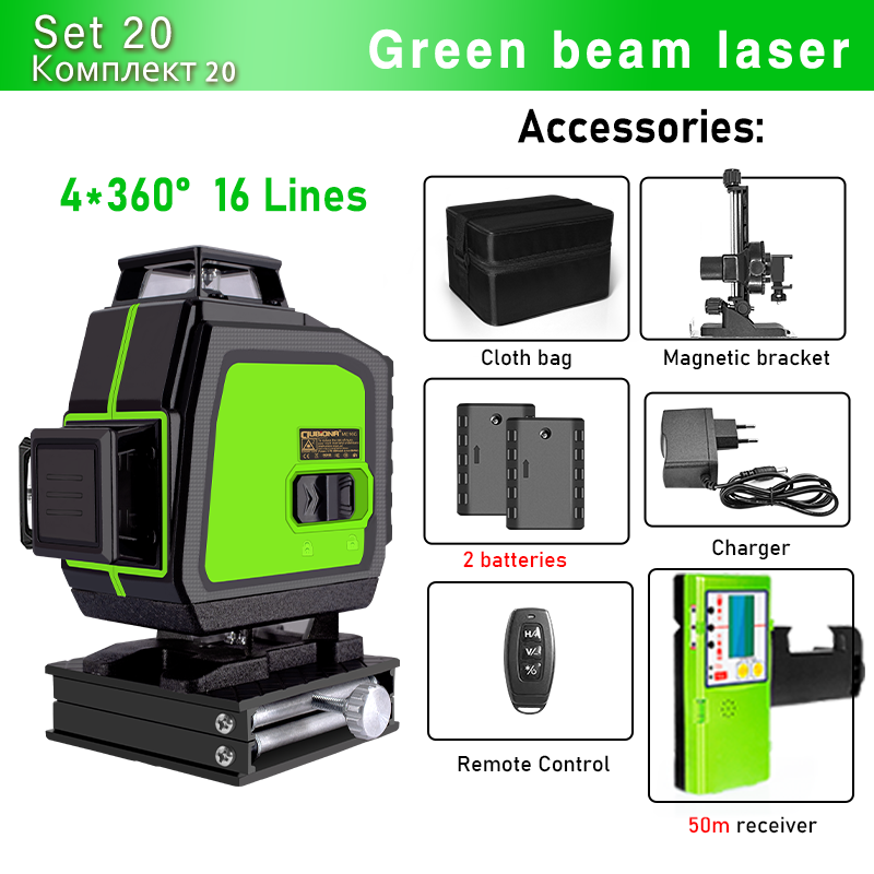 Clubiona 16/12 lines Laser Level professional Super powerful Green Lines With 3600mAh Li-ion Battery Remote Control pulse mode