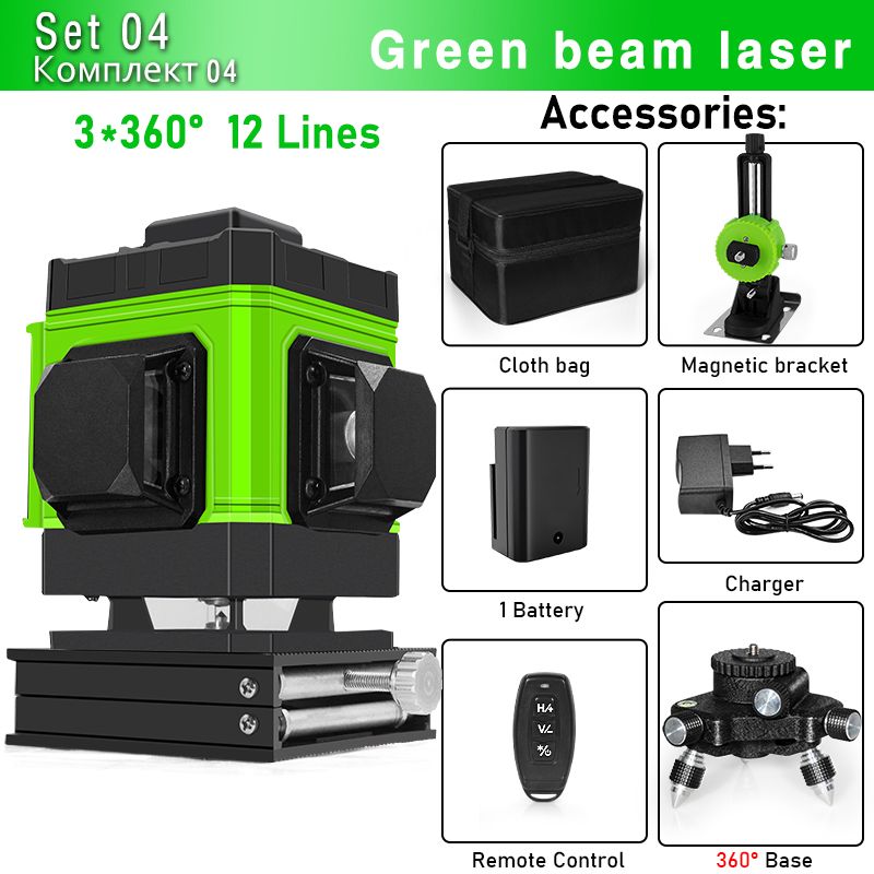 Clubiona 16/12 lines Laser Level professional Super powerful Green Lines With 3600mAh Li-ion Battery Remote Control pulse mode