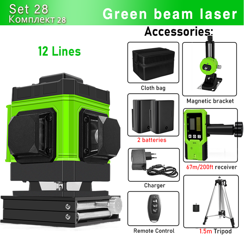 Clubiona 16/12 lines Laser Level professional Super powerful Green Lines With 3600mAh Li-ion Battery Remote Control pulse mode