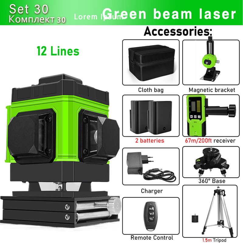 Clubiona 16/12 lines Laser Level professional Super powerful Green Lines With 3600mAh Li-ion Battery Remote Control pulse mode