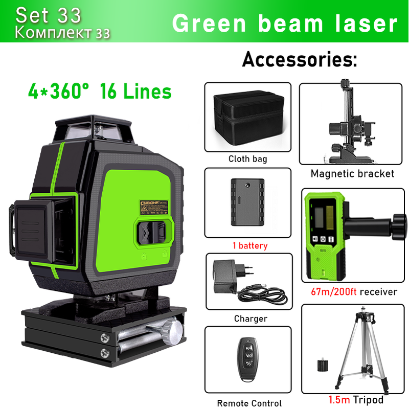 Clubiona 16/12 lines Laser Level professional Super powerful Green Lines With 3600mAh Li-ion Battery Remote Control pulse mode