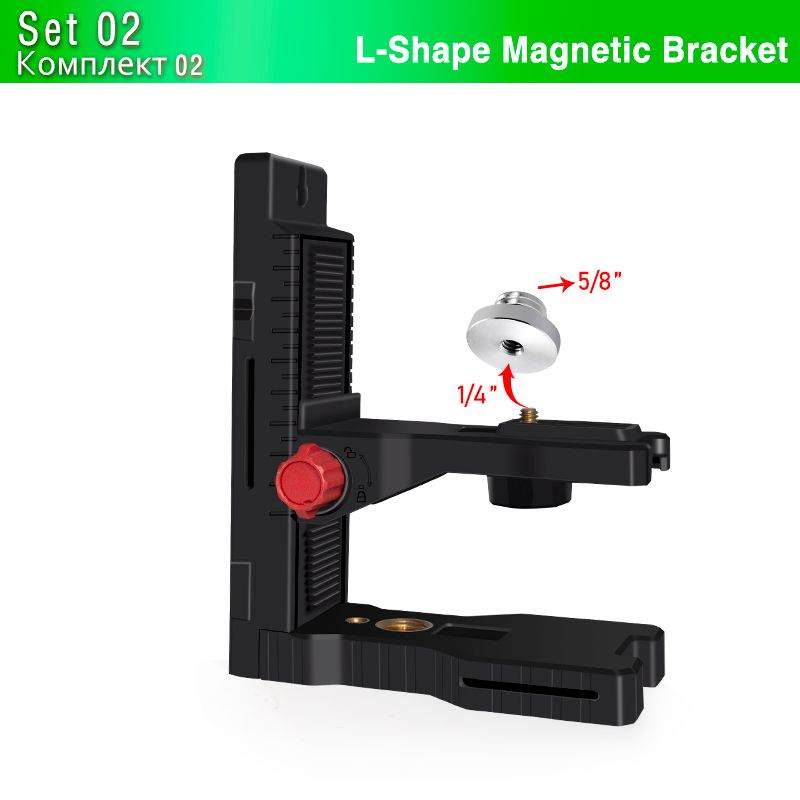 Adjustable Strong Magnetic Laser Level Bracket Wall Mounted L-Bracket with Clip Holder Hanger 1/4" Threaded Stand Support