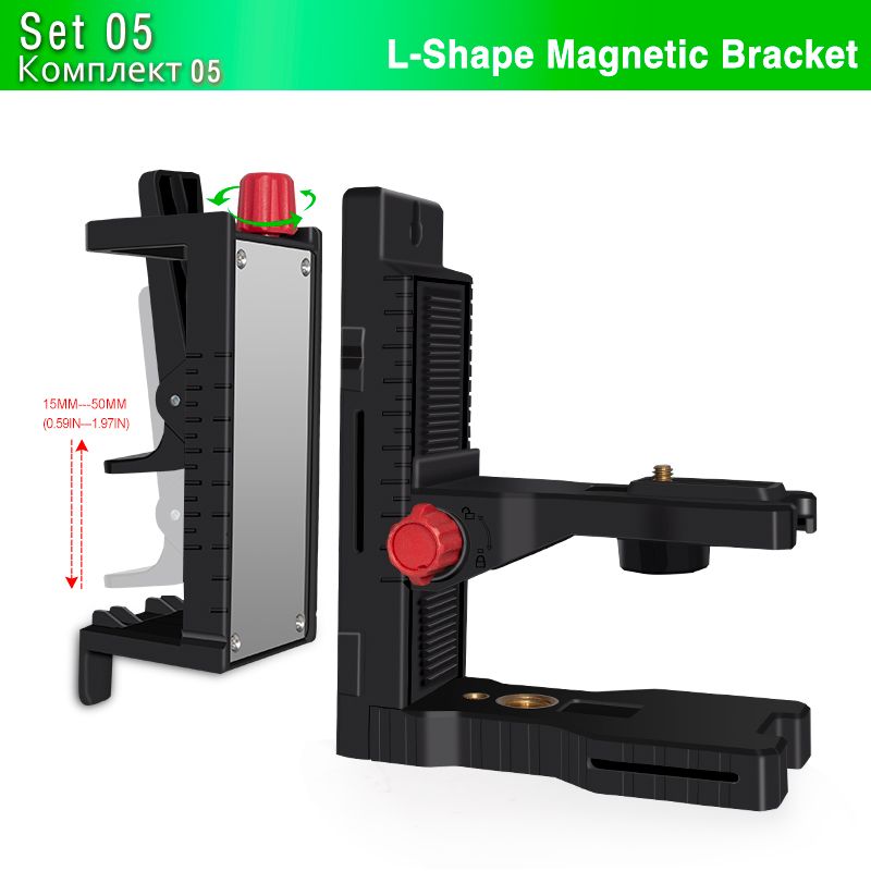 Adjustable Strong Magnetic Laser Level Bracket Wall Mounted L-Bracket with Clip Holder Hanger 1/4" Threaded Stand Support