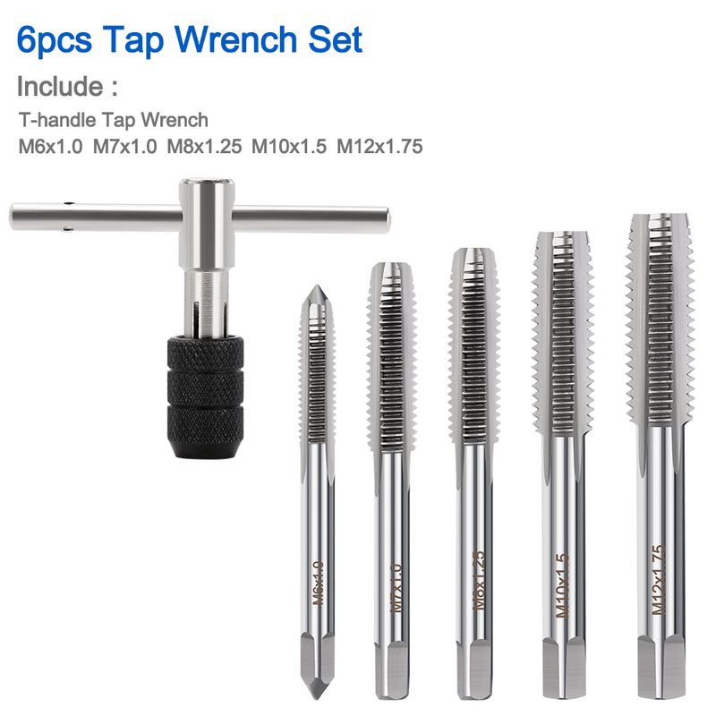 6pcs Set Including: 1pc Wrench and 5pcs Tap( M6x1.0 M7x1.0 M8x1.25 M10x1.5 M12x1.75)