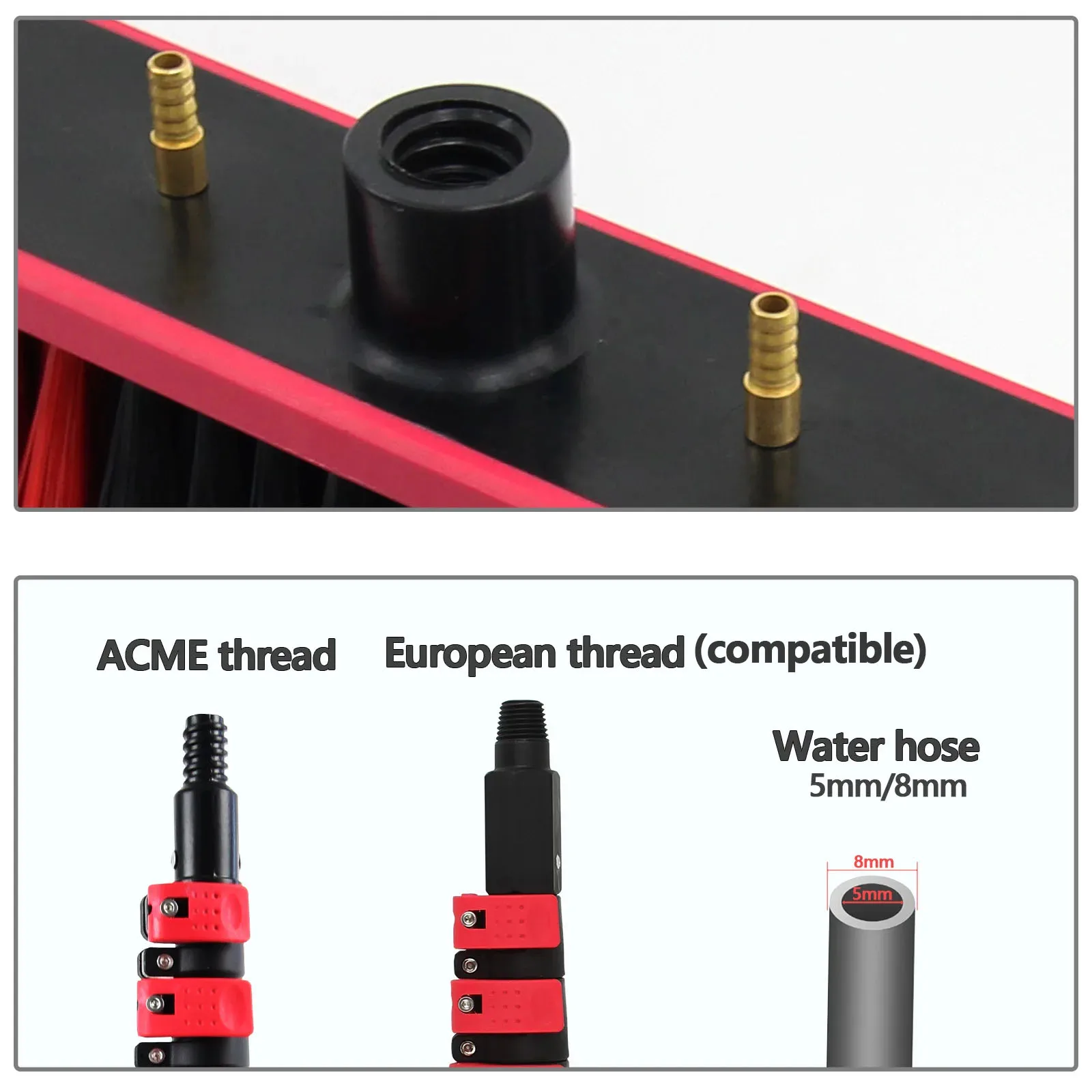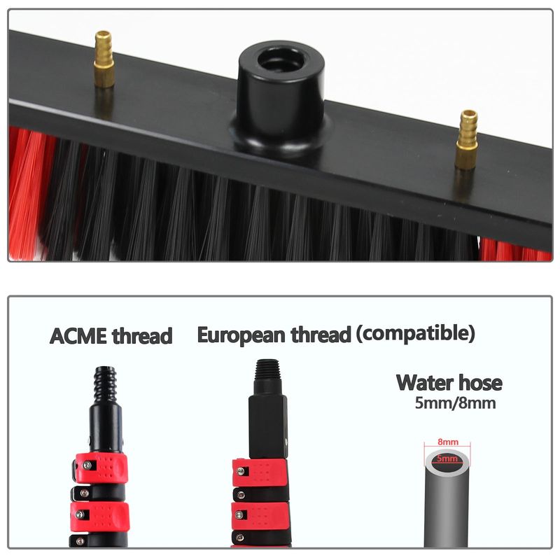 AMERICAN THREAD AND ANGLE ADAPTER: The thread of the brush head is American thread, the specification is 3/4 ACME thread, only need the top of your telescopic pole for this specification, then it can be matched perfectly.Angle adapter can provide great convenience for your use, because the different angle can meet the different use scenarios.