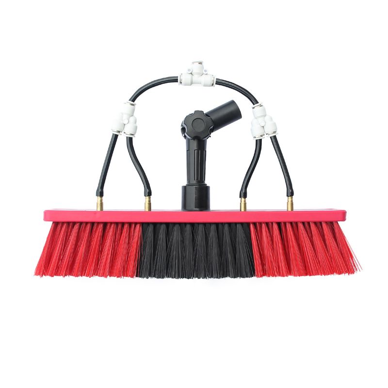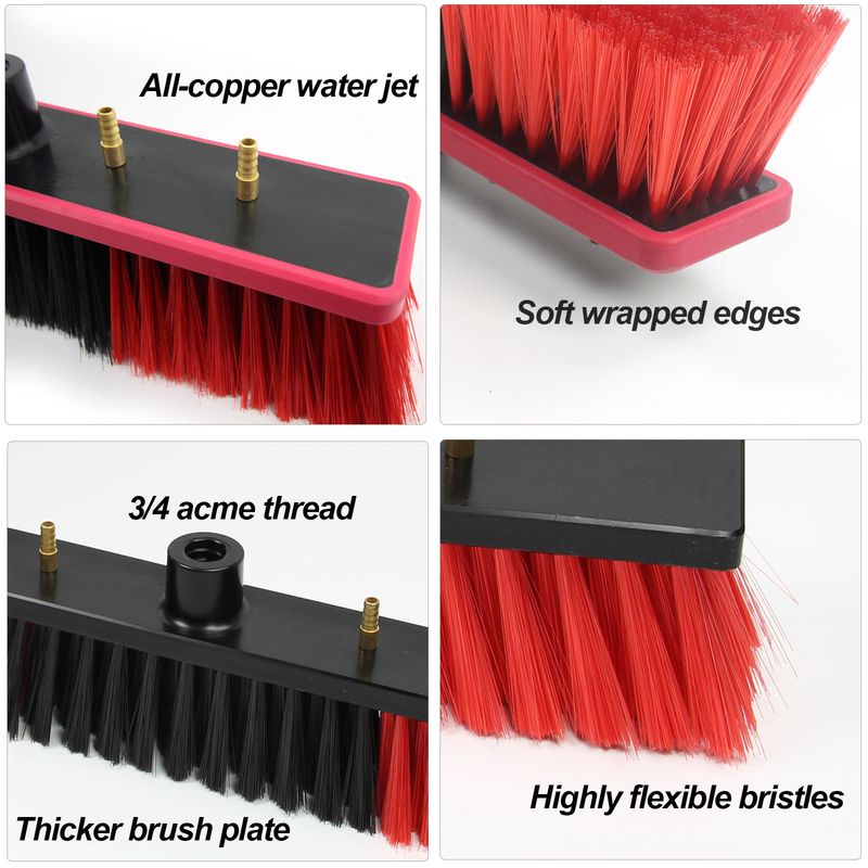 PRPFESSIONAL WINDOW/SOLAR PANEL CLEANING BRUSH HEAD WITHOUT POLE:durable design idea with a high-density brush plate, thick bristles and excellent materials. 60mm (2.36in) long bristles can easily handle a variety of cleaning tasks. Featuring 4 copper water jets to cover the entire area of the bristles, the copper water jets are you don't need to worry about corrosion and rust.You can have this great brush for a long time to clean household.