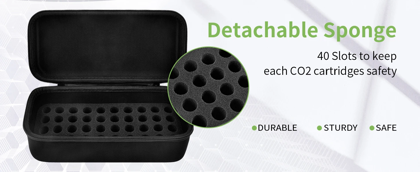 • CO2 N2O Cartridges Case Fits for: Great size for 12g 8g for Crosman/ for Umarex/ for Leland/ for Growlerwerks/ for Impeccable Culinary Objects (Ico)/for Leland/ for Cyclingdeal/ for Daisy/ for PRO BIKE TOOL/ for Hawki, for CXWXC/ for SodaStream. A must-have accessory for cyclists, as well as airsoft players and hunters who rely on CO2/N2O for gear inflation. Keep cartridges secure during cross-country rides or tactical missions