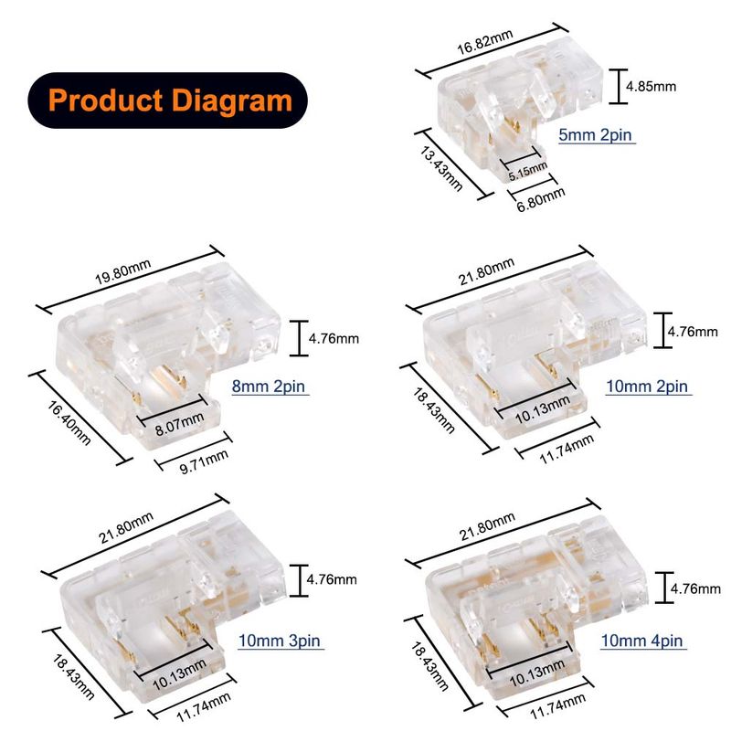 COB LED Connector Seamless 90 Degree L Shape Corner Connectors for 5mm 8mm 10mm 2/3/4pin FOB RGB CCT Tape Lights Connection 5pcs