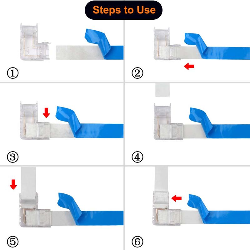 ②. Please ensure that the width of the LED strip is consistent with the width of the connector used (for example, 8mm connectors cannot be used for 10mm or 5mm wide LED strip)
