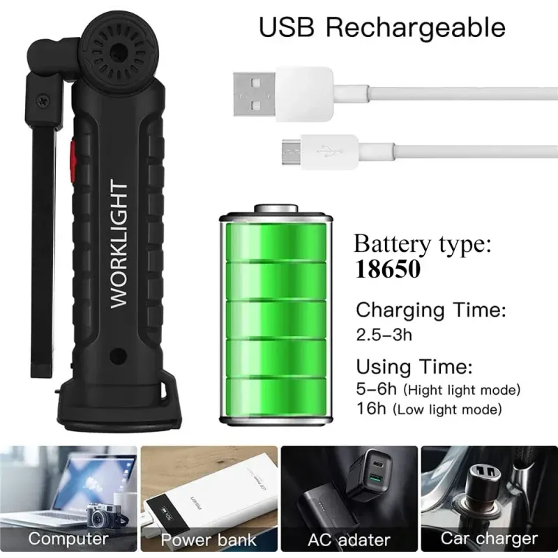 🔦 Rechargeable LED Work Light - 360° Magnetic Camping Lamp w/ Dual Light Modes 🔦