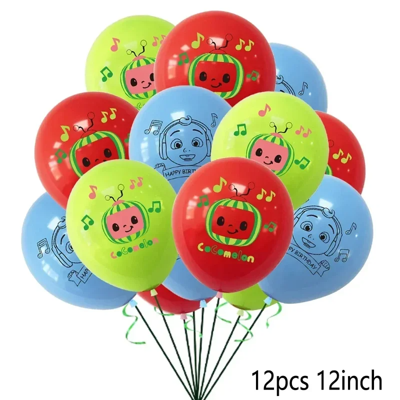 Cocomelon Balloon JJ Melon Watermelon Toy Happy Birthday Banner Party Decoration Backdrop Cake Topper JOJO Disposable Tableware
