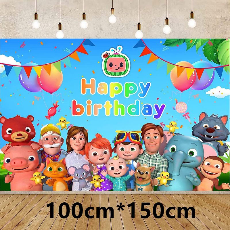 Cocomelon Balloon JJ Melon Watermelon Toy Happy Birthday Banner Party Decoration Backdrop Cake Topper JOJO Disposable Tableware