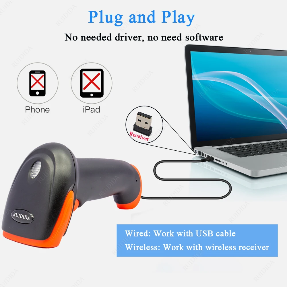 Excellent performance, quickly identify 1D/2D code, Paper code, Screen code, Plastic code, and irregular code, such as reflective code, colorful code, distorted code, fuzzy code, damaged code,misplaced code.