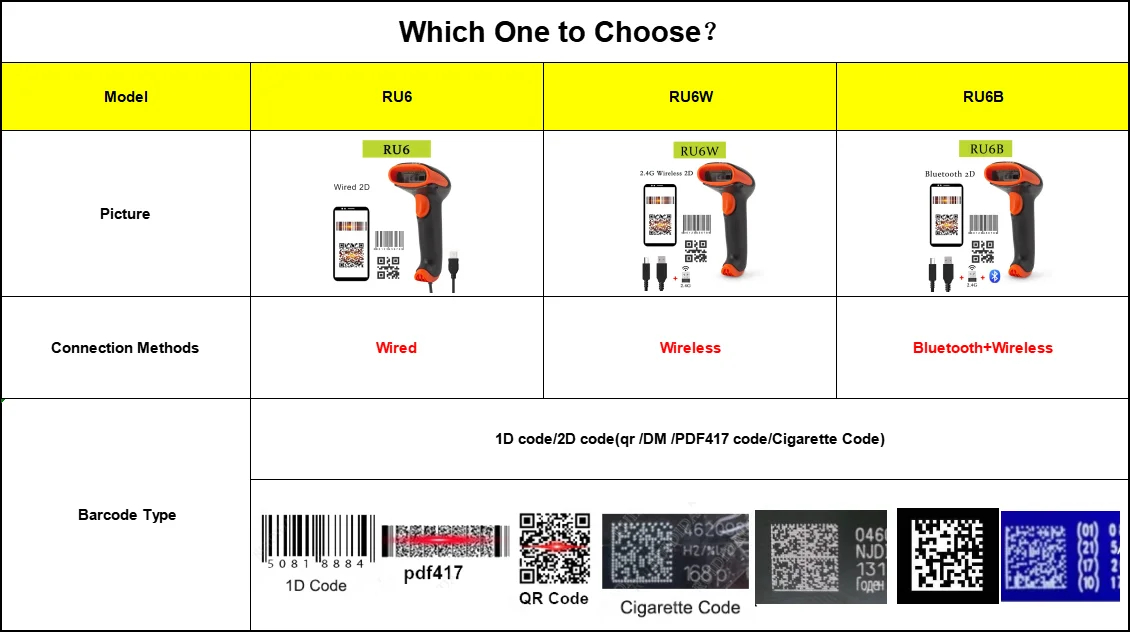 We sell wired, wireless, and bluetooth scanners on this link, please double check that the model you choose is correct before placing an order