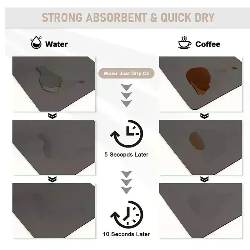 This mat made of super absorbent soft diatomite that can suck up spilled coffee instantly. Coffee drying mats for countertop strong water absorption, durable, light weight.
