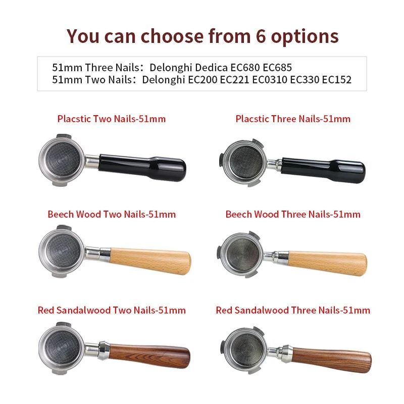 51mm 2-Ear: For Delonghi EC200/EC221/ECO310/EC0311/ECO330/EC152/EC156B/ECP35.31/EC410/ECZ351.WEC235.BKECL341.P/EC330S/ECP33.21/EC250/ec3305/EC270/EC1341.CP