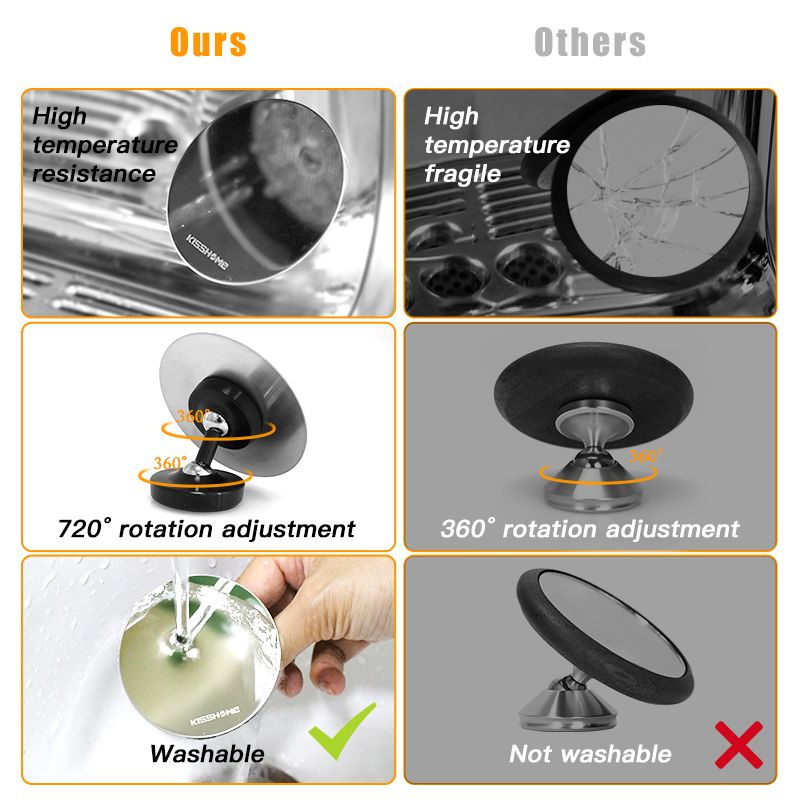 Coffee Extraction Mirror Magnetic Espresso Shot Mirror Stainless Steel 360° Adjustable For Bottomless Portafilter Barista Tools