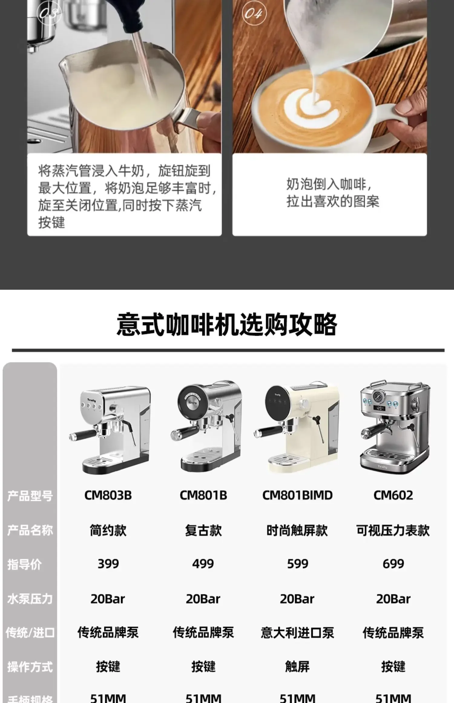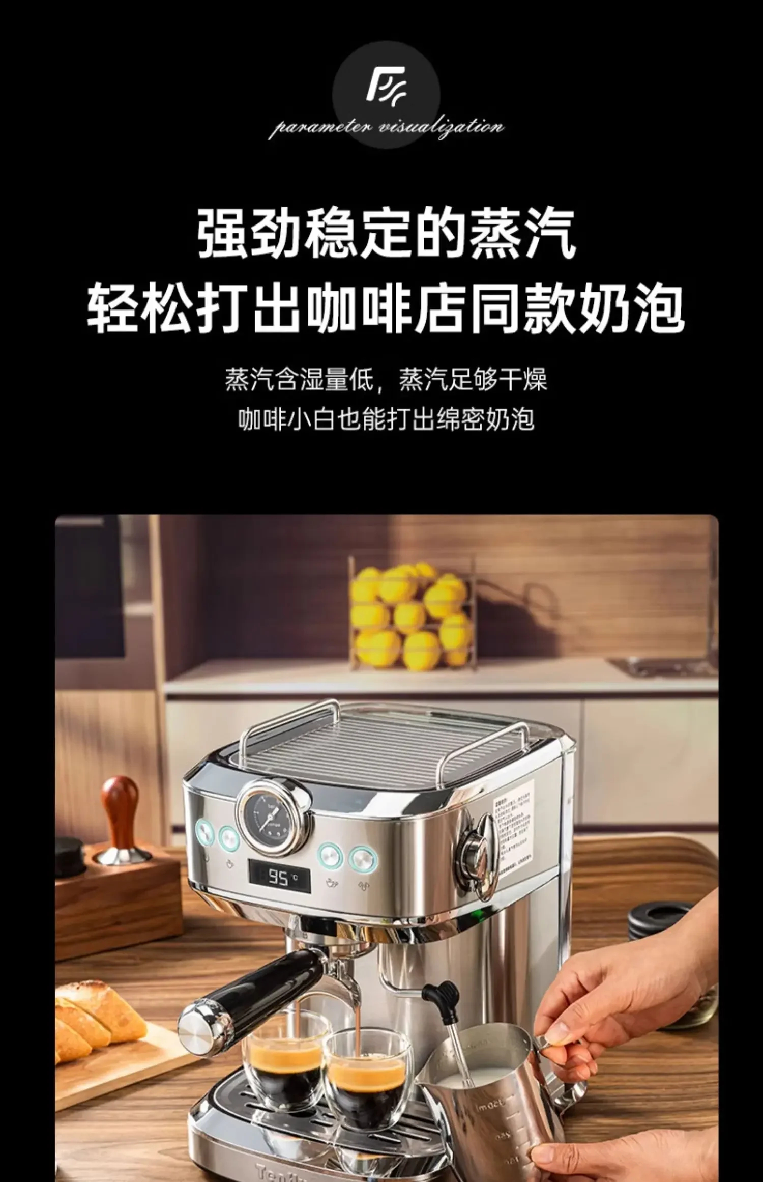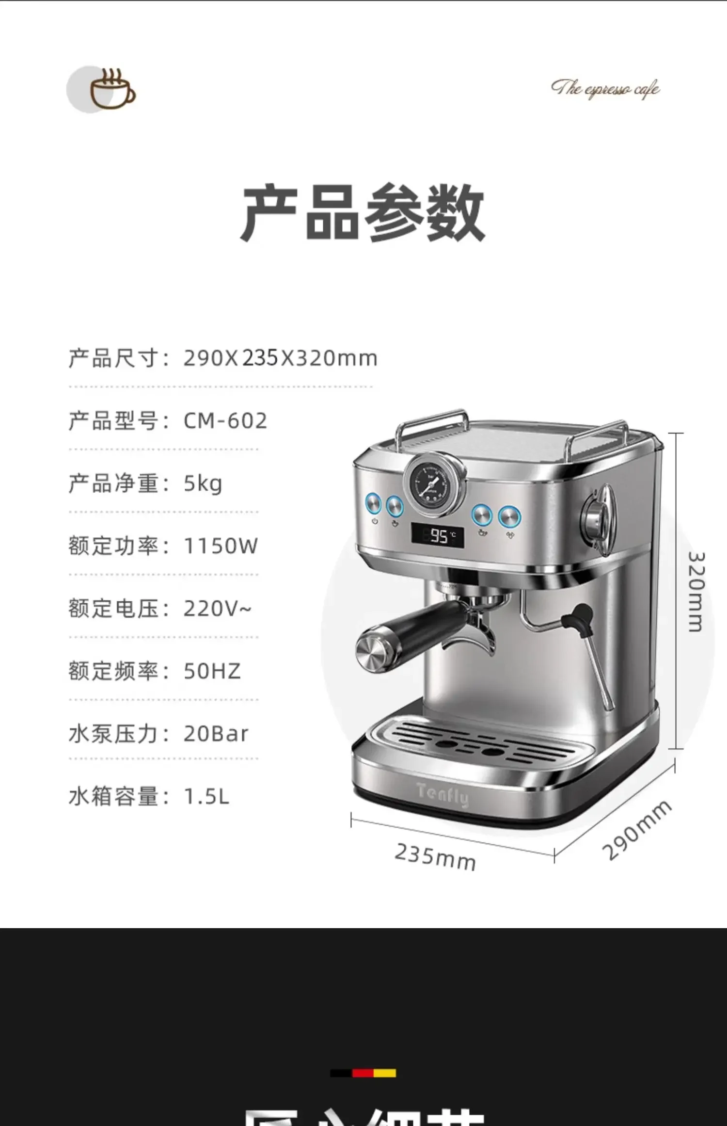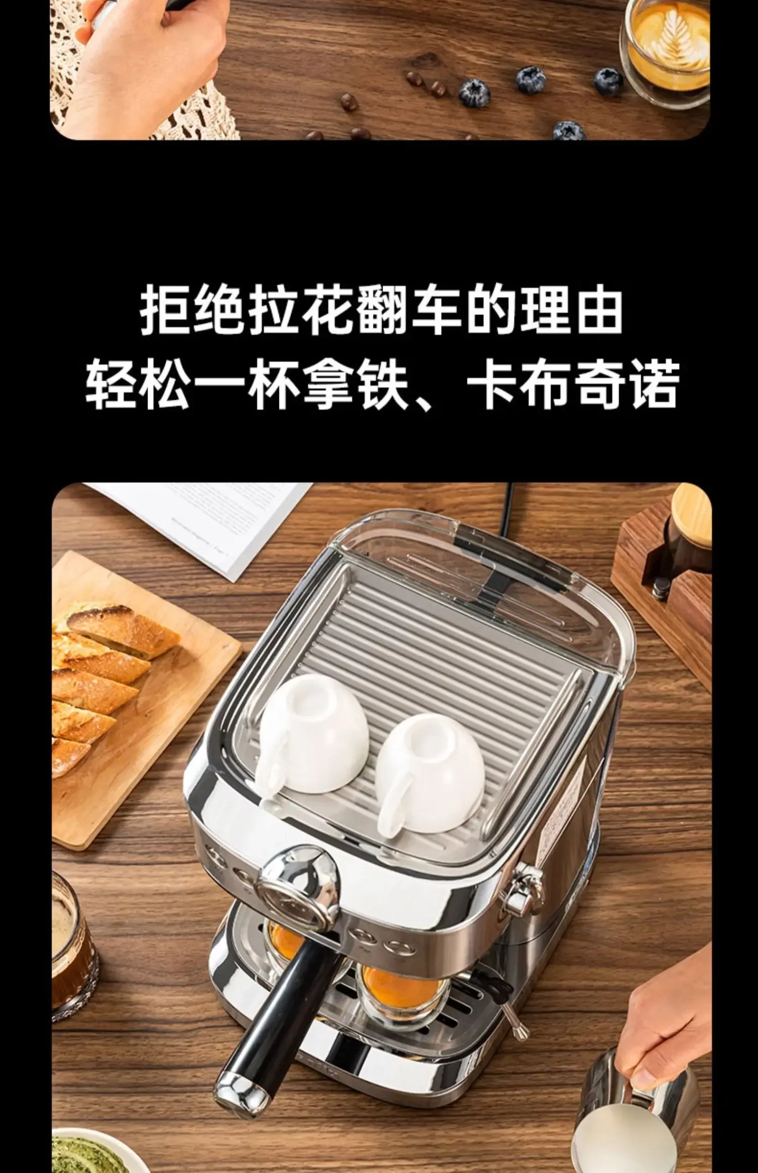 Coffee machine household small 20Bar concentrated retro, semi-automatic steam milk foam integrated