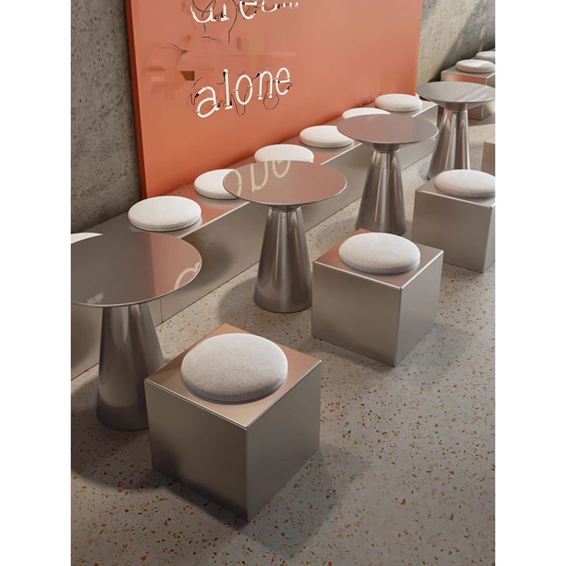 Coffee Shop Special Use Customized Against The Wall Double Card Seat Stainless Steel Table Home Use Afternoon Tea Tables Chairs