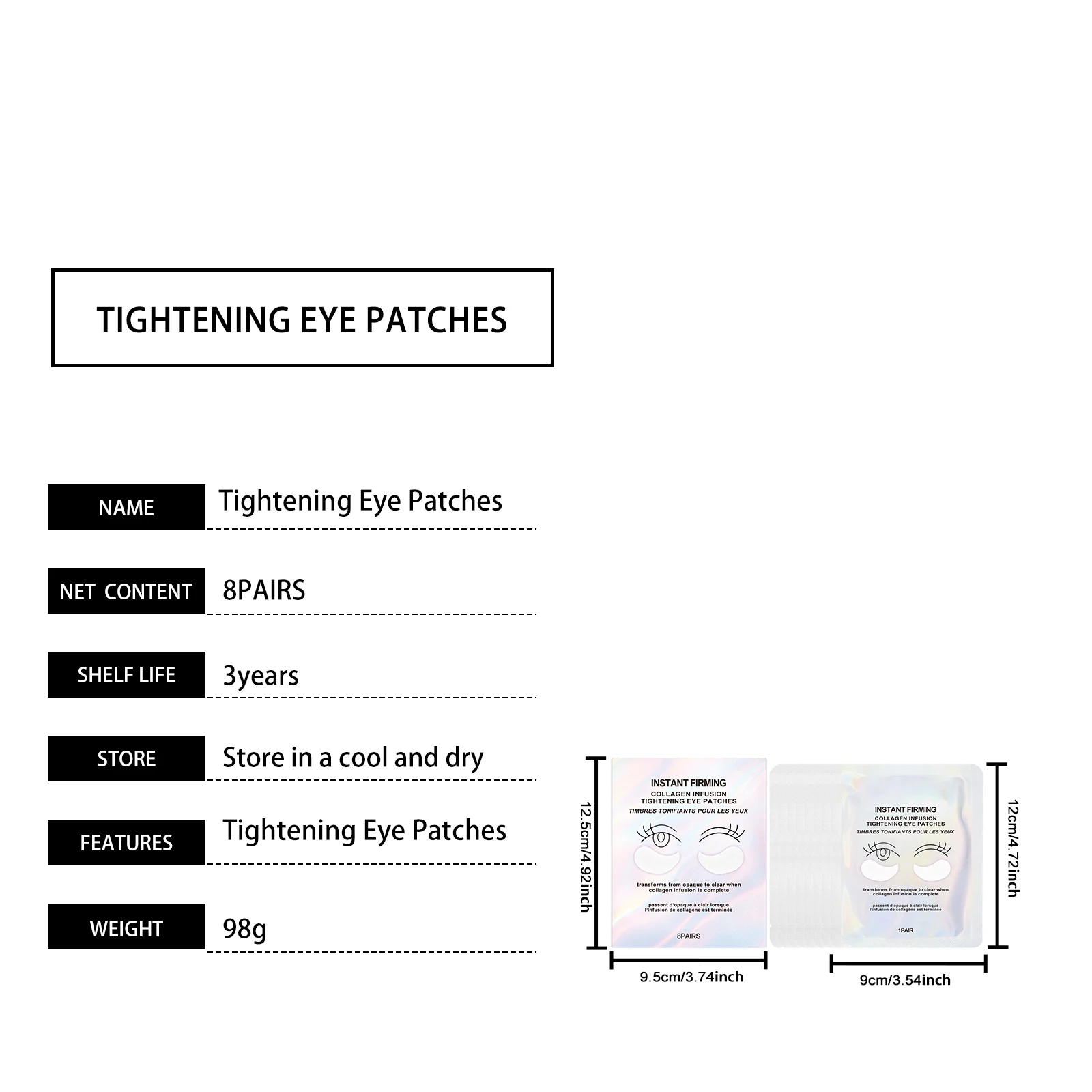 Collagen is a key protein for skin firmness. These patches help to improve skin elasticity and provide a temporary tightening and lifting effect, making the eye area look more toned and youthful. Perfect for pre-makeup preparation or overnight recovery.