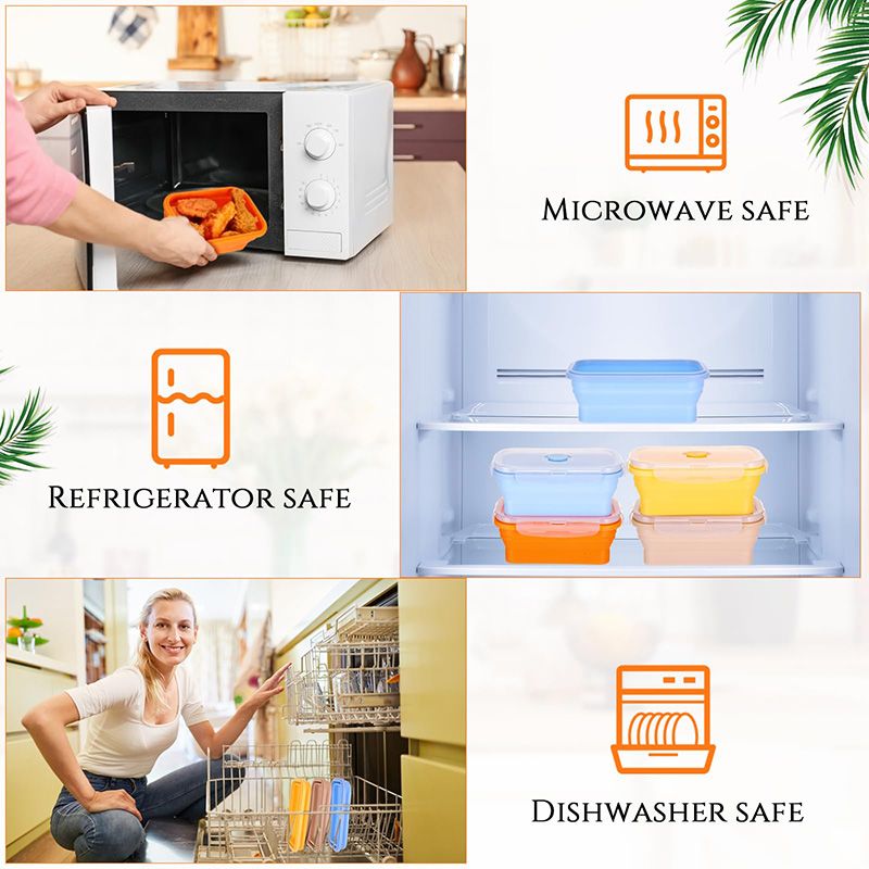 Collapsible Food Storage Containers Silicone Lunch Box with Lid Food Bowls Kitchen Stackable Lunch Box for Pantry Freezer Safe