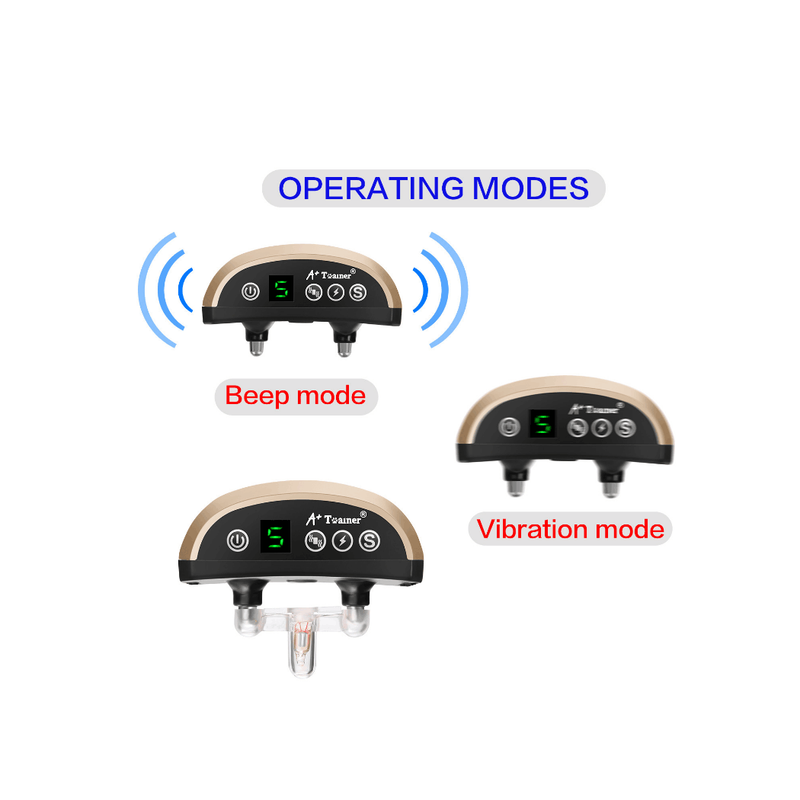 2.STEP by STEP ANTI BARKING CONTROL, the training mode will automatic switch from BEEP to VIBRATION to SHOCK if the dog keeps barking
