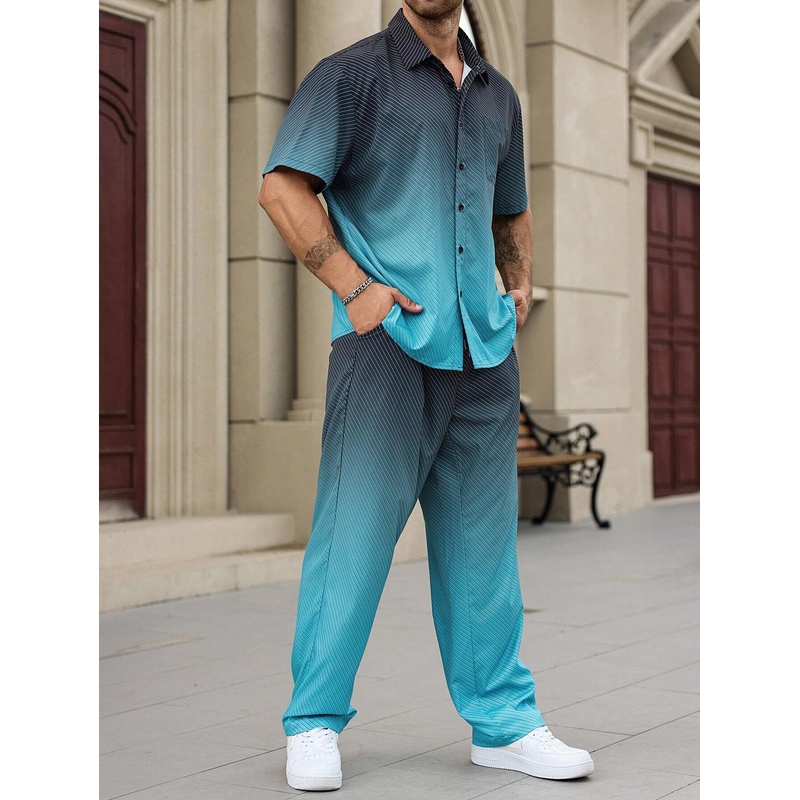 Color Gradient Plant Short Sleeve Shirt Trousers Suit MB01MR10ZN241223T004 XL