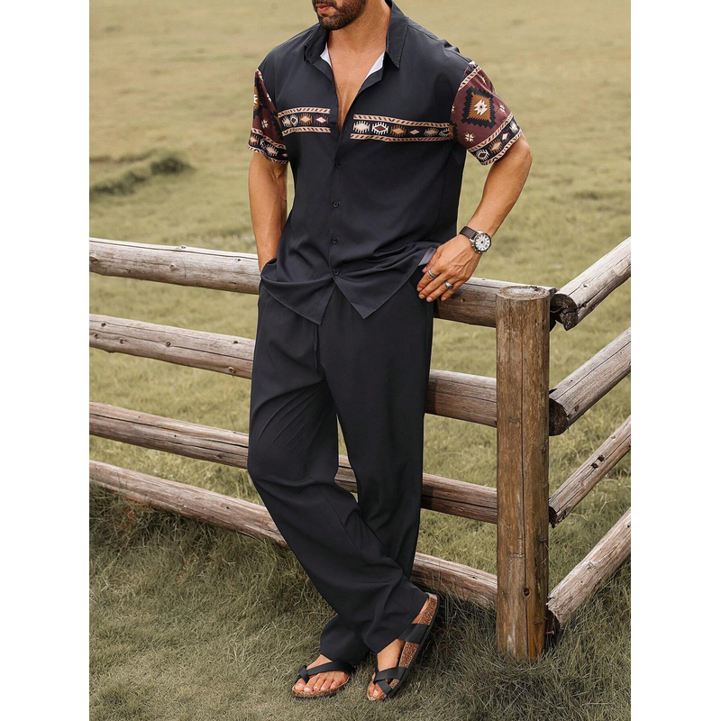 Color Gradient Plant Short Sleeve Shirt Trousers Suit MB01MR10ZN241223T006 XL