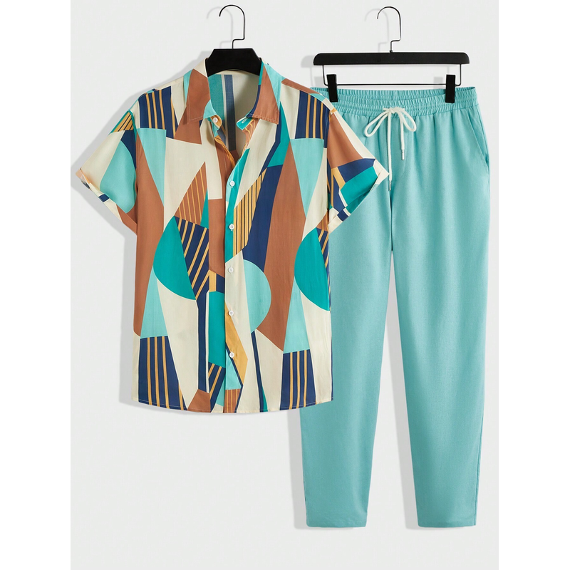 Color Gradient Plant Short Sleeve Shirt Trousers Suit MB01MR10ZN241223T036 S