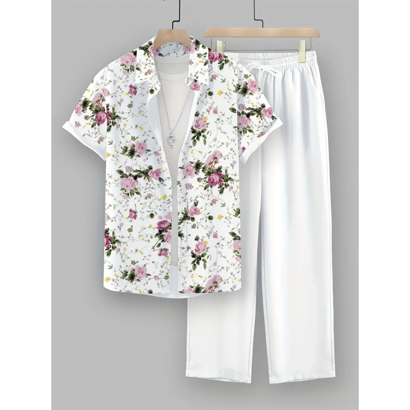 Color Gradient Plant Short Sleeve Shirt Trousers Suit MB01MR10ZN241223T039 XL