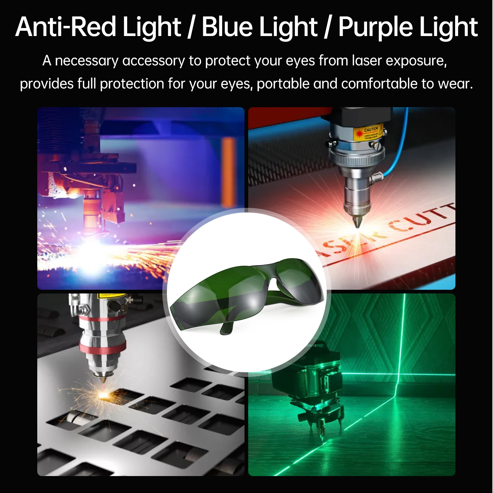 Anti-Red light, blue light and purple light. A necessary accessory to protect your eyes from laser exposure, provides full protection for your eyes, portable and comfortable to wear.
