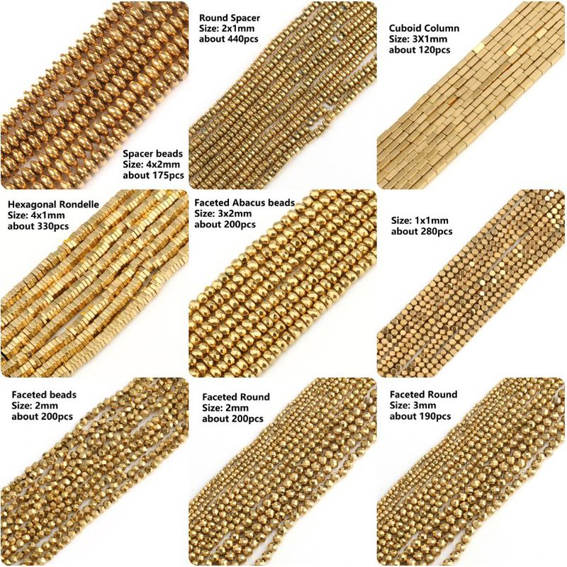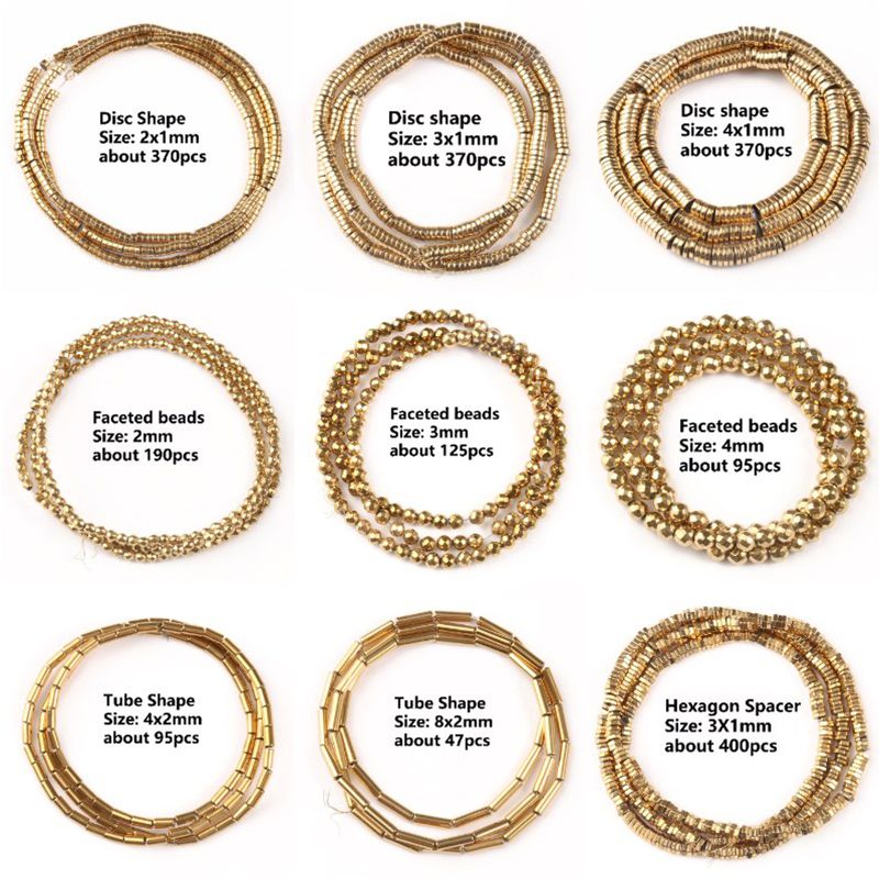 Name:Color Retention Real Gold Plated Hematite Bead Irregular Heart Cube Rondelle Spacer Beads For Jewelry Making Diy Bracelet 15inch