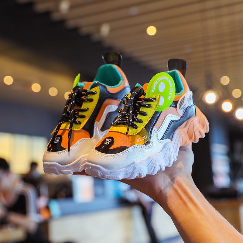 Colorblock Casual Wave Bottom Sneakers Children's Shoes Old Shoes Orange 27
