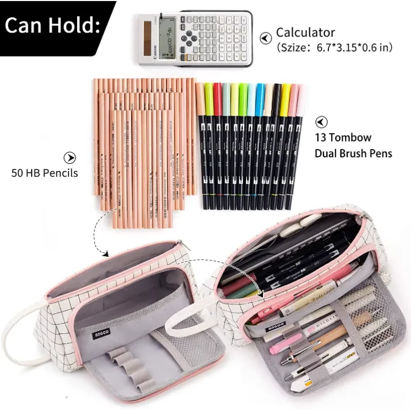 【Large Storage】Two zipper,large storage capacity multifunction,accommodate up to 50 pens/pencils and Makeup Brush other gadgets.