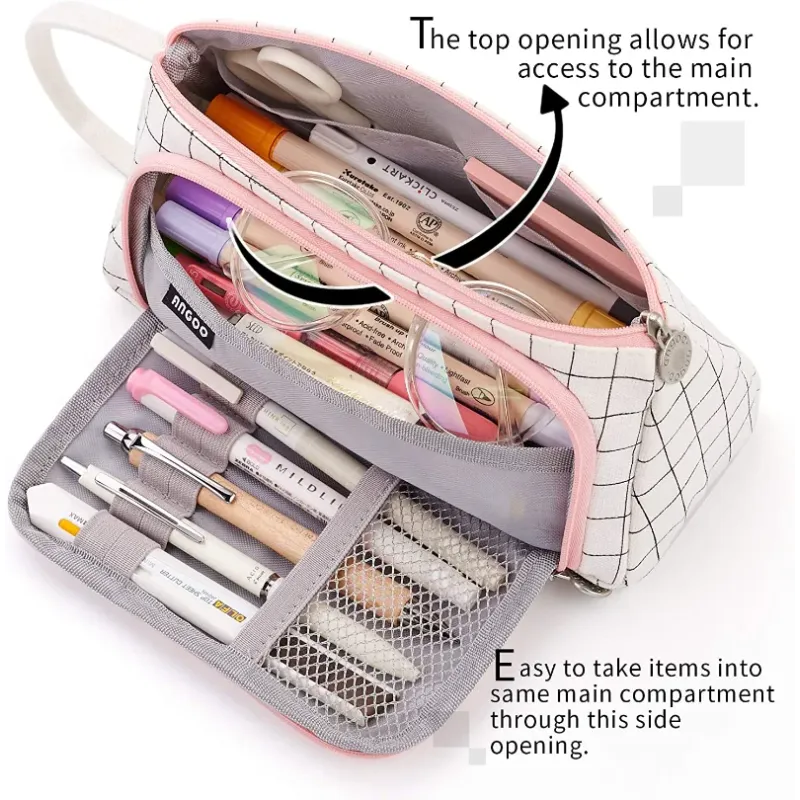 【Large Storage】Two zipper,large storage capacity multifunction,accommodate up to 50 pens/pencils and Makeup Brush other gadgets.