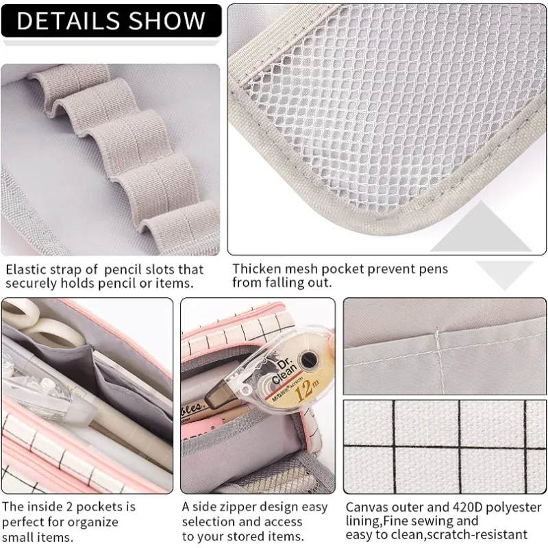 【Multi-Function】1.Front window design,You can clearly see and take the stationery or anything you need,easy to use 2. Hand-held Band design easy to carry. 3.Keep important small notes, cards, and tickets In an easy-to-view compartment. 4. It is not only a pencil case, but also can be used for other purposes such as travel case or cosmetic case.