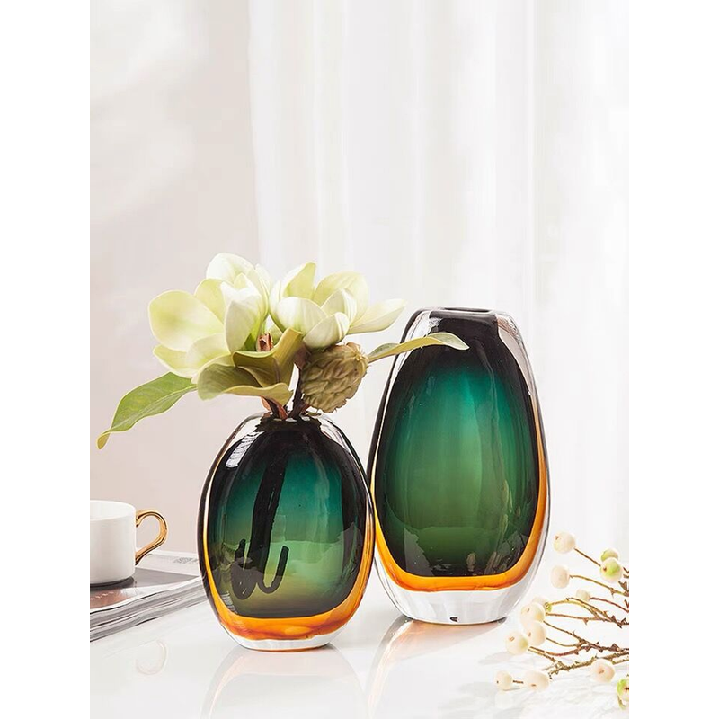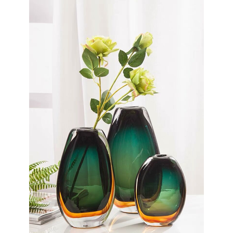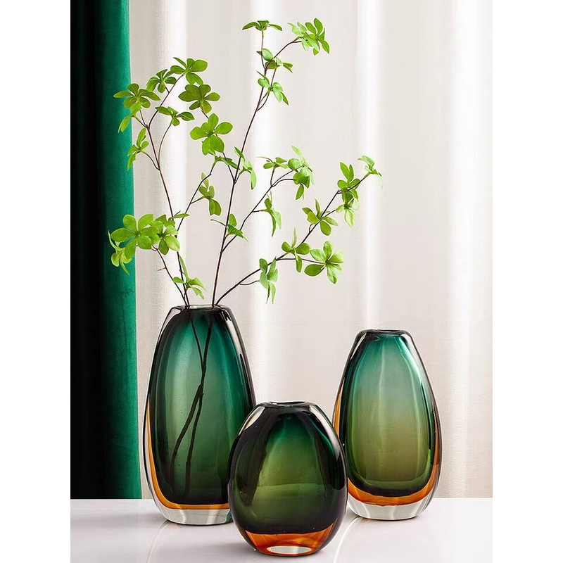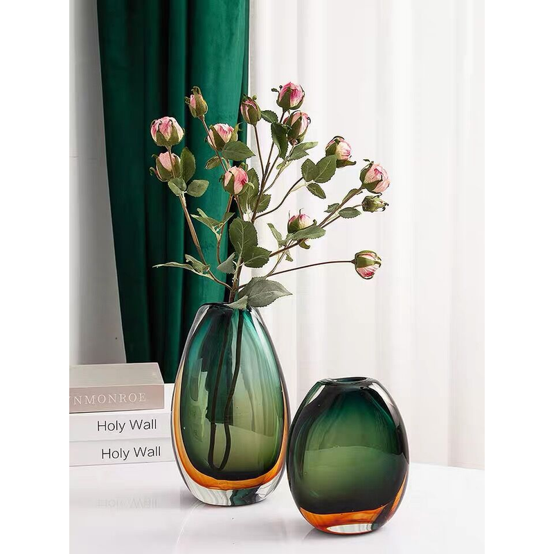 Colored Glass Vase Decoration Creative Simple Modern Light Luxury Green XS