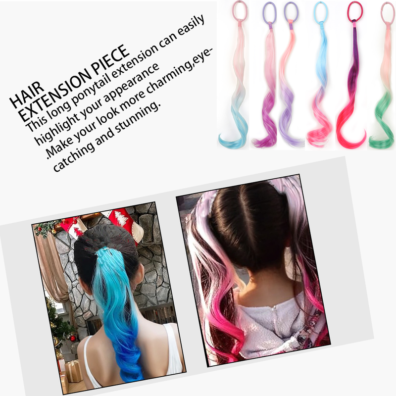 Colored Hair Extensions Synthetic 14" Lightweight Colored Hair Extensions for Kids Curly Ponytail Extension with Elastic Tie