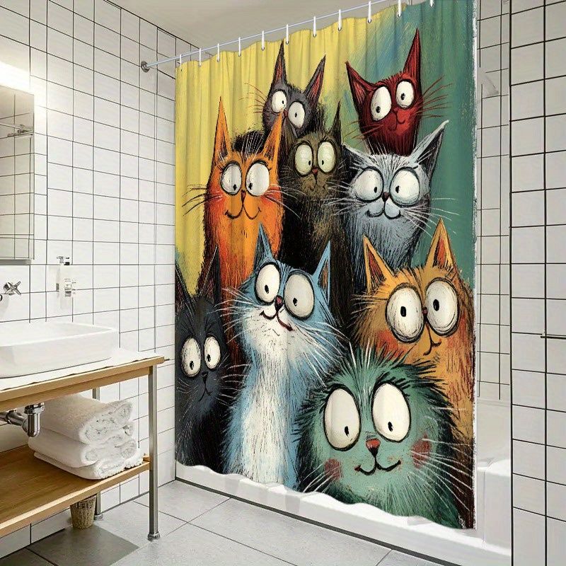 Colorful Cartoon Cats Waterproof Shower Curtain for Bathroom Decor, Bringing a Fun and Whimsical Touch to Your Space