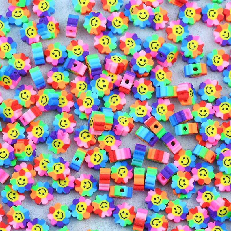 Colorful Sunflowers Polymer clay Smile Spacer Loose Beads 9mm For Jewelry Making DIY Bracelets Earrings Phone Chains Accessories
