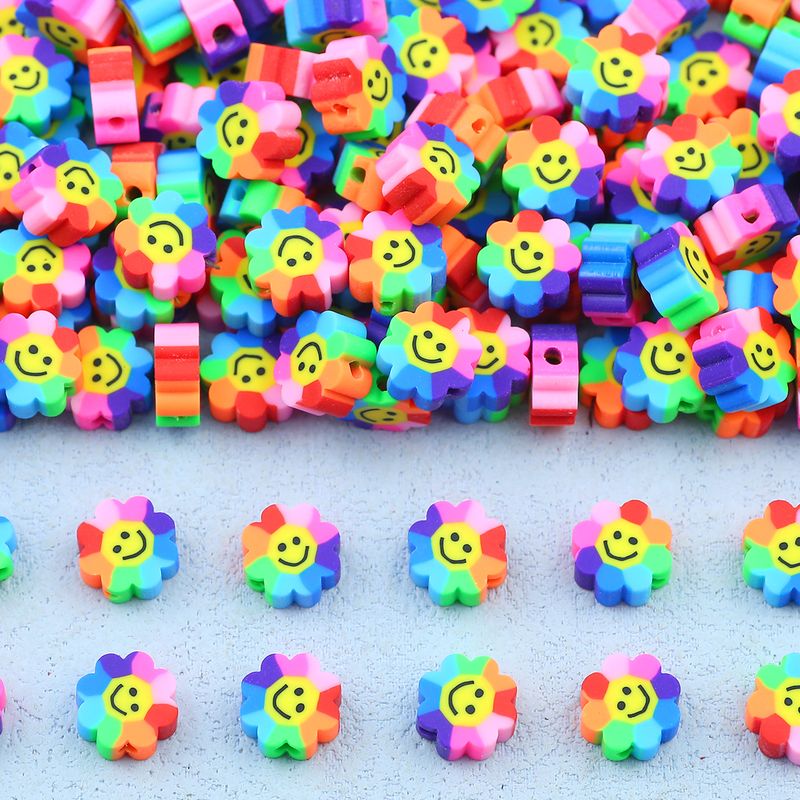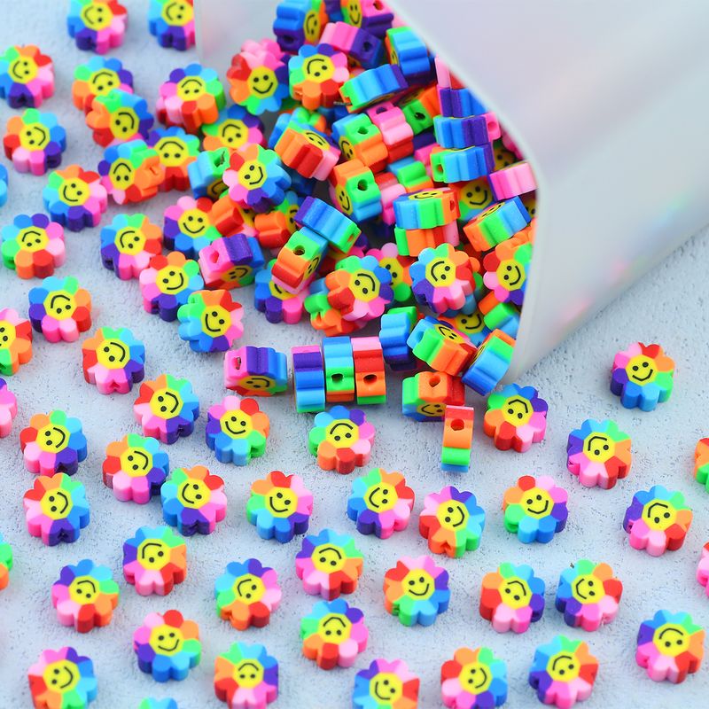 9mm Colorful Sunflowers Polymer clay Smile Spacer Loose Beads for Jewelry Making DIY Bracelets Earrings Phone Chains Accessories