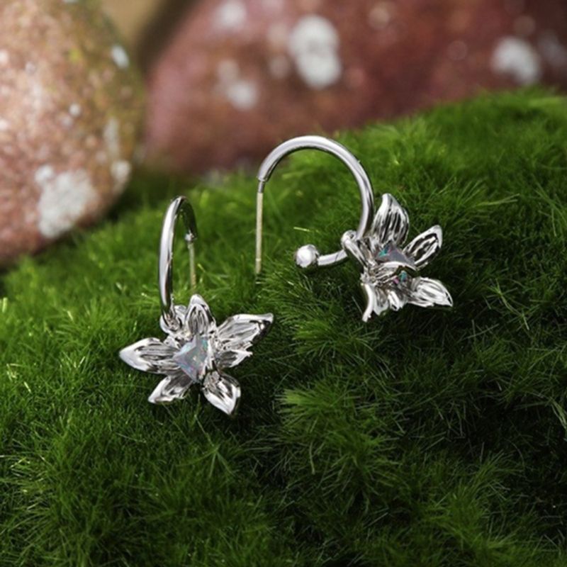 Colorful Zircon Flower Necklace Light Luxury Silver Earrings RE323291