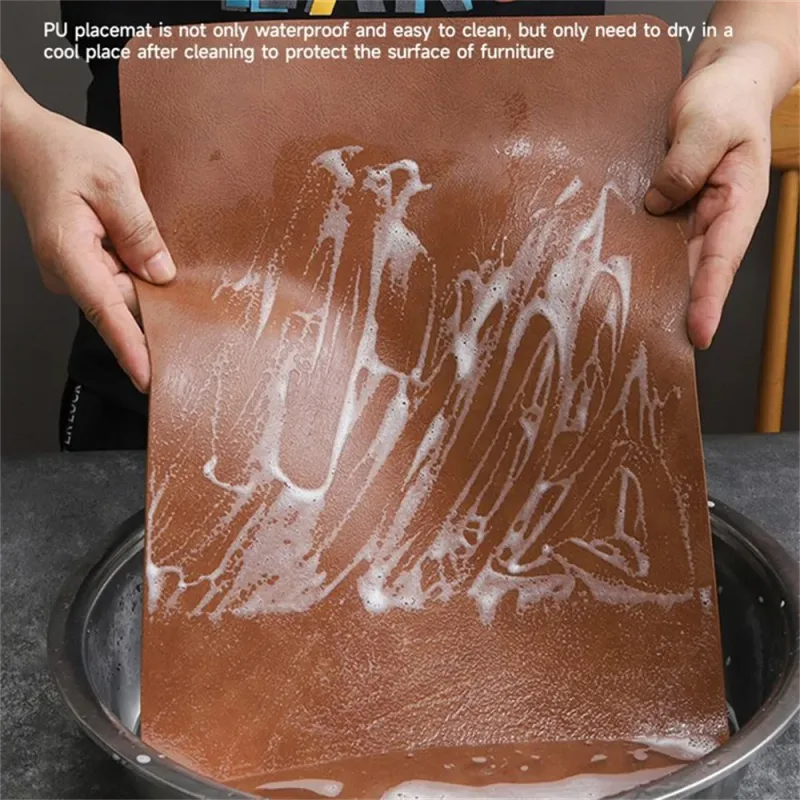 Scratch-resistant and durable faux leather placemat for effective protection against burns, scratches, stains, and other damage.