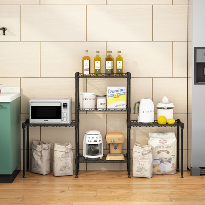 What you see is this Changeable Assembly Floor Standing Carbon Steel Storage Rack! It can be randomly assembled for the detachable design. Solid carbon steel structure, bright silver varnishing, this storage rack features stylish look and strong anti-rust performance. Mesh design can well protect the objects from falling down. It requires no tools for easy and quick assembly. You need such a practical tool for organizing your gadgets. Just take action!