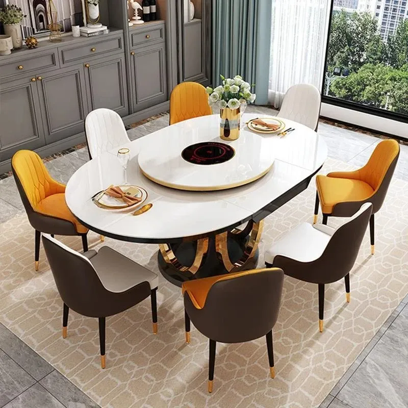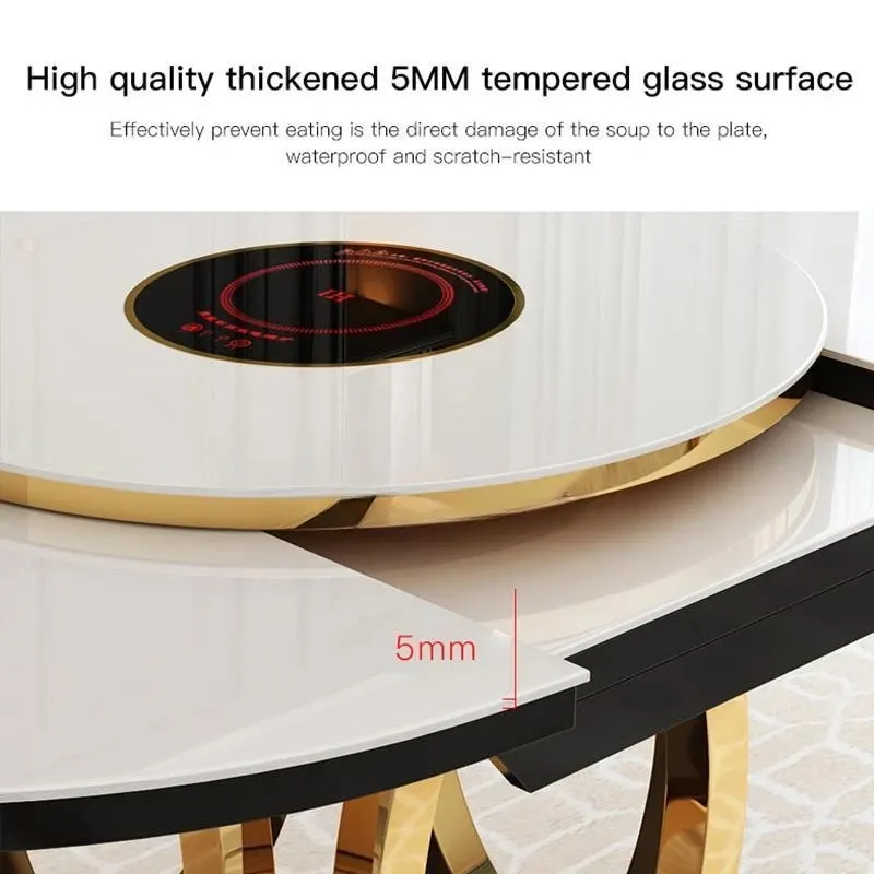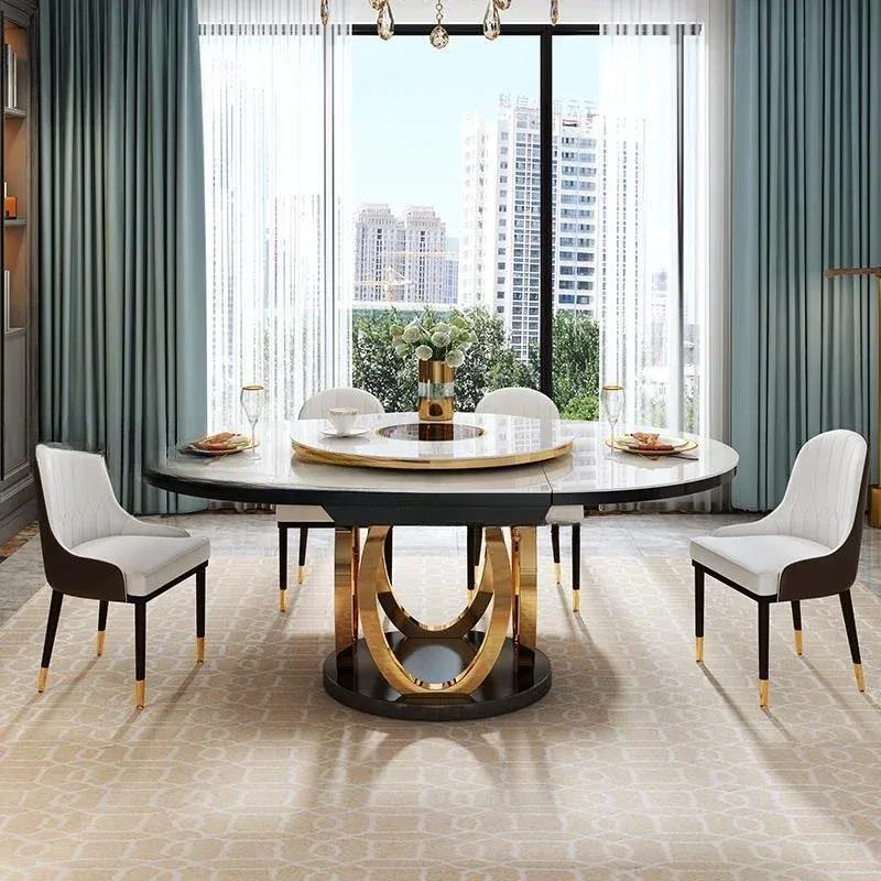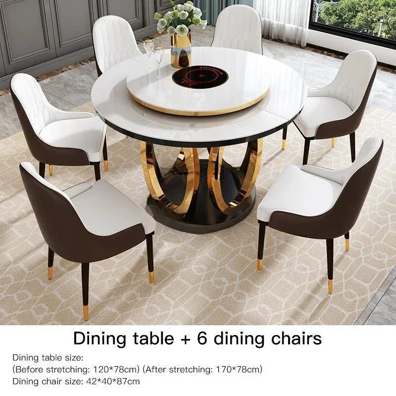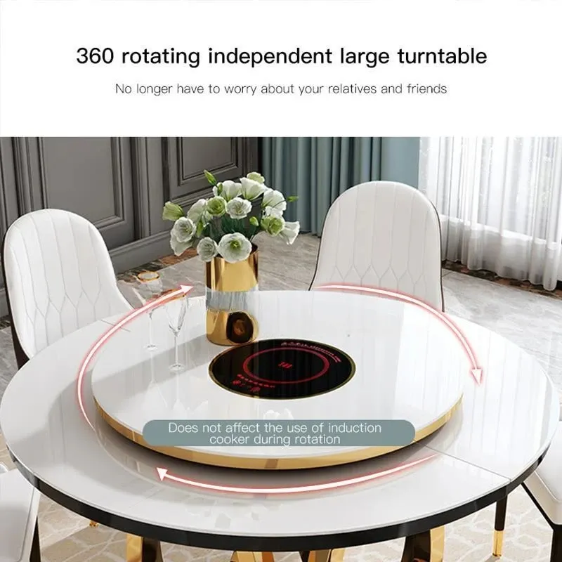 Combination Of Dining Table And 6 Chairs With Turntable Stainless Steel Frame Round Table Kitchen Furniture For Large Apartment