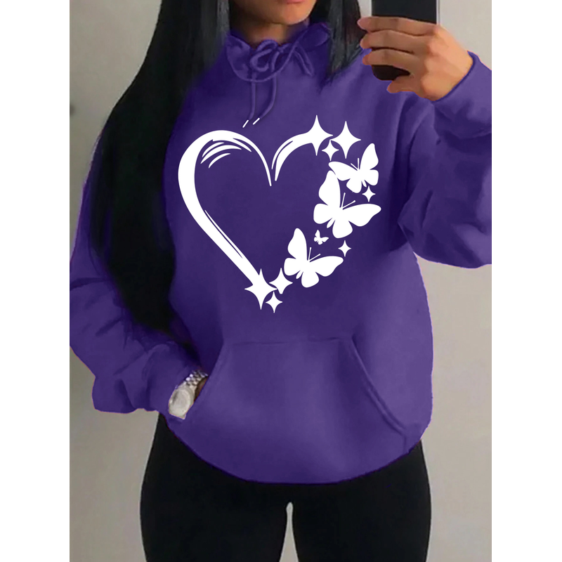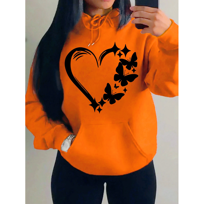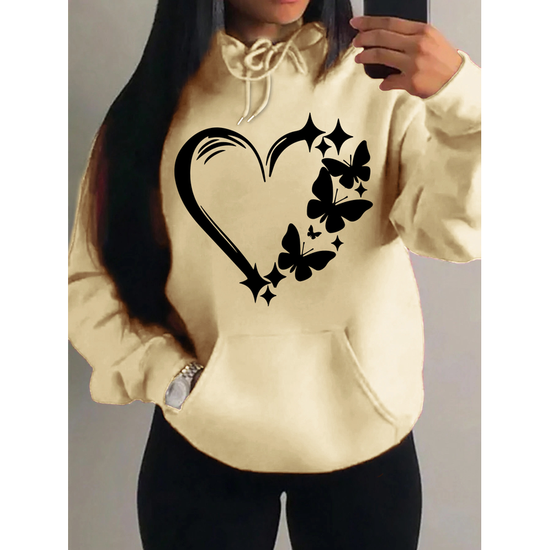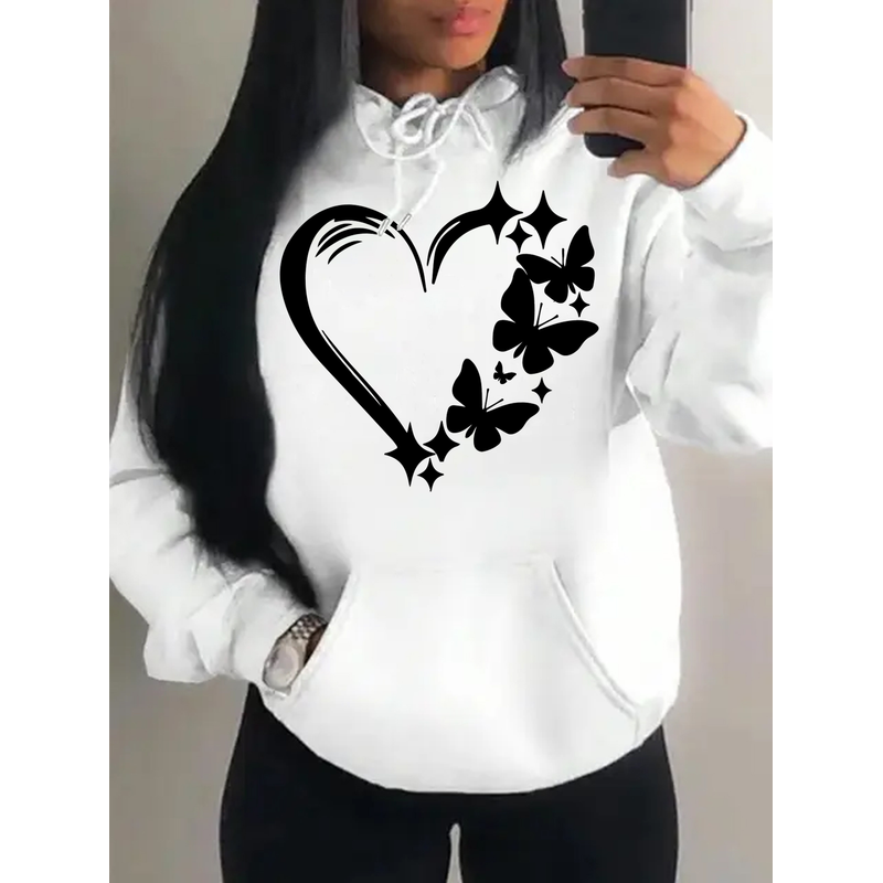Combination Of Love And Butterfly Pattern Hoody Women Hip Hop Street Hoodies Trendy Pocket Clothes Vintage Multicolor Hoodie