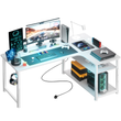COMHOMA L Shaped Gaming Desk with Power Outlets Corner Computer Desk with Shelves Headphone Hook PC Table Workstation